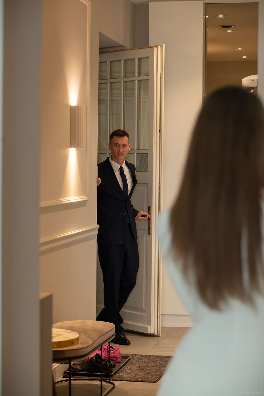 Gorgeous Casey and her muscular boyfriend having amazing sex on the leather armchair